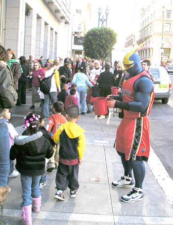 The Salvation Army did their Holiday drive kick off with THUNDER, the Golden State Warriors mascot on hand.