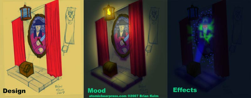 Every once in a while I like to work my inner Imagineer and come up with concepts for effects. This one is a glowing ghostly pirate painting. This could be used for a Halloween walk-through.