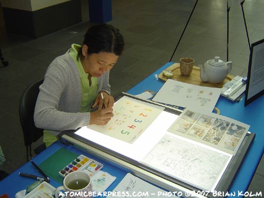 I ran into her last Sunday when she was the artist in residence at the Asian Art Museum. She was talking with kids and adults who were visiting the museum and working on some beautiful small paintings.