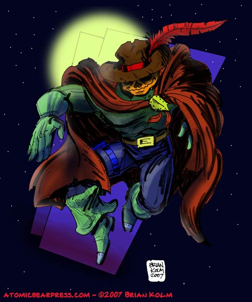 A drawing in pencil and pen and colored in Photoshop.