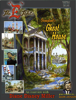 Issue #41 features an interview with Walt Disney’s daughter Diane Disney Miller, who is working to open a museum to celebrate her fathers life. (rumored to maybe be opened in San Francisco) There is also a collection of sketches and script of a purposed walk through version of the Hunted Mansion, designed by Ken Anderson. In the future they plan to do a write up on the Marc Davis proposal too. And last, but not least is a tribute to Leon Janzen, who with his brother created the magazine, and passed away September 9th. This is the first new issue since that time, continued by his brother, Jack Janzen. The magazine is fandom at its best: Positive, Exciting, and Dedicated to not letting some information of the past slip away.