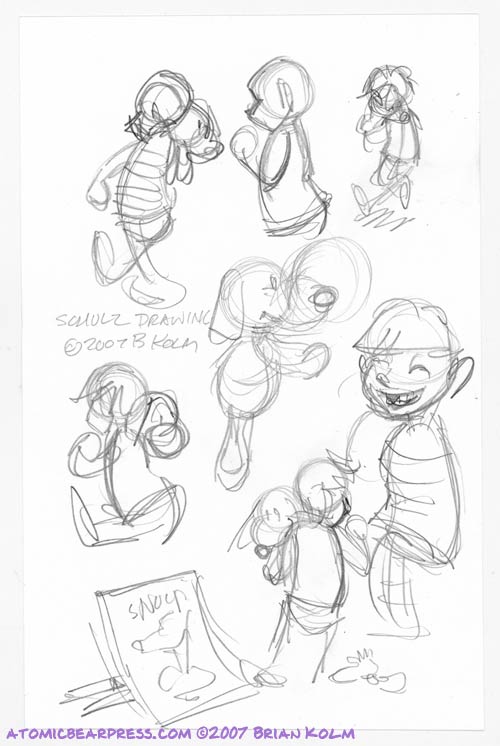 These are some of my sketches for the piece I did for the Schulz Museum. Enjoy. See the final drawing HERE.